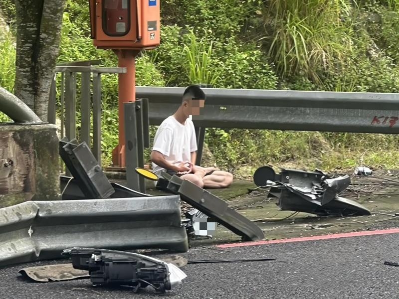 Sau khi gây tai nạn, anh Hoàng ngồi thiền trên lề đường. Hành động này khiến những người có mặt tại hiện trường ngạc nhiên. Khi được hỏi, anh ta trả lời lơ mơ, có vẻ như không tỉnh táo – Ảnh: UDN